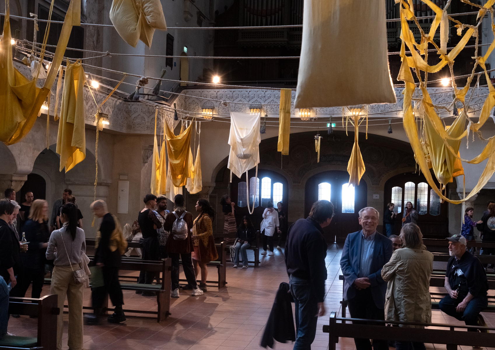 By making visible materials that are always in transformation, conditioned by their performative properties – time, transience, and presence – Lie’s works underscore the intimate yet expansive coexistence of beings, and address our ongoing participation in the processes of living, dying, and decaying. The energy of these transformations unfolds through the scent of herbs, the smell of earth, and the changing natural color of turmeric when exposed to light. In this interplay, visitors and users of the Zwingli Church are invited to become part of the installation in which different entities and “The Unloved Ones” co-exist.